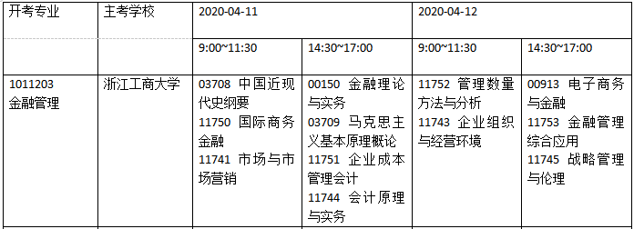 2020年4月浙江自考金融管理都考哪些课程?