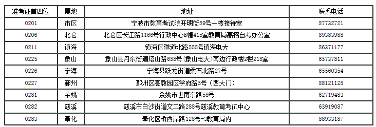 2.领取地点:宁波市教育考试院一楼接待室(各区县市考生请咨询当地考试中心、自考办)
