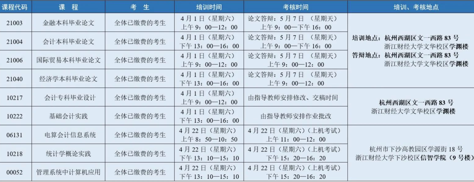 浙江财经大学2023年(上)高教自考实践性环节培训、考核安排